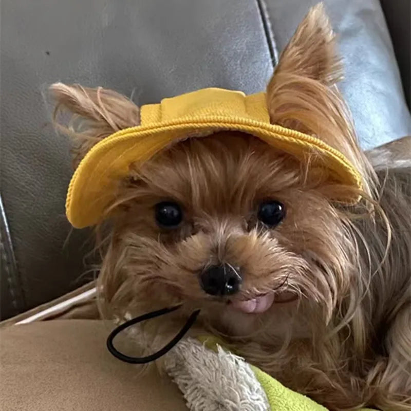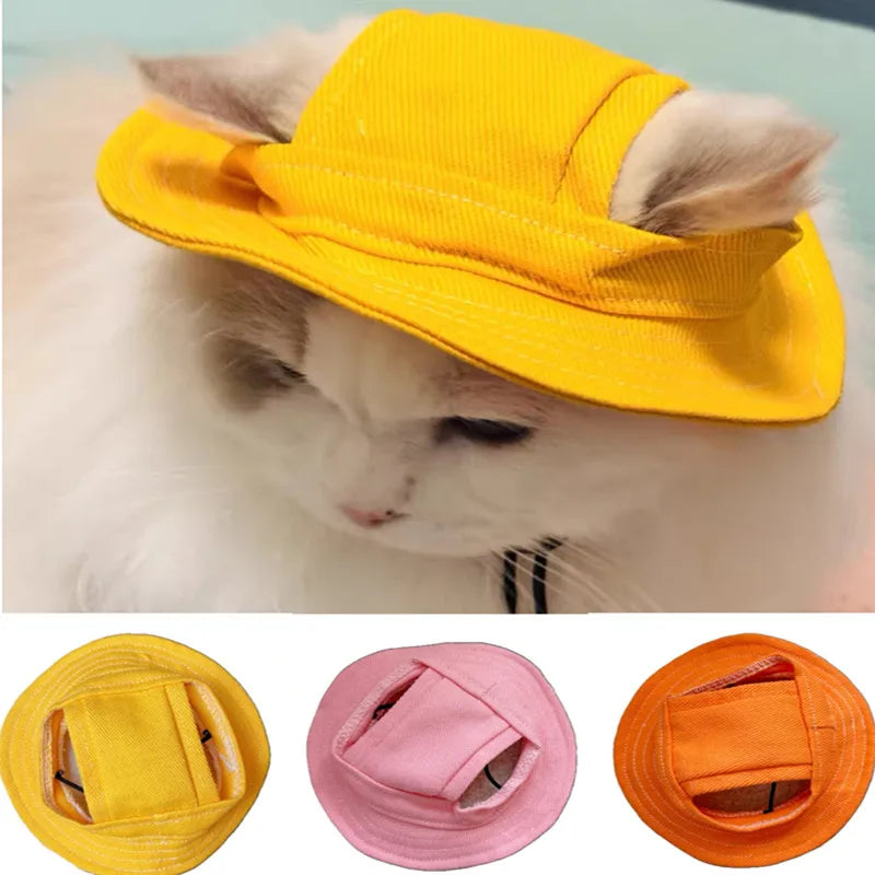 Cute Cat Dog Pets Hat with Ear Hole Dog Beach Visor Hat Sunhat for Cat Accessories Sun Cap Pet Outdoor Hat Supply for Dog Costum